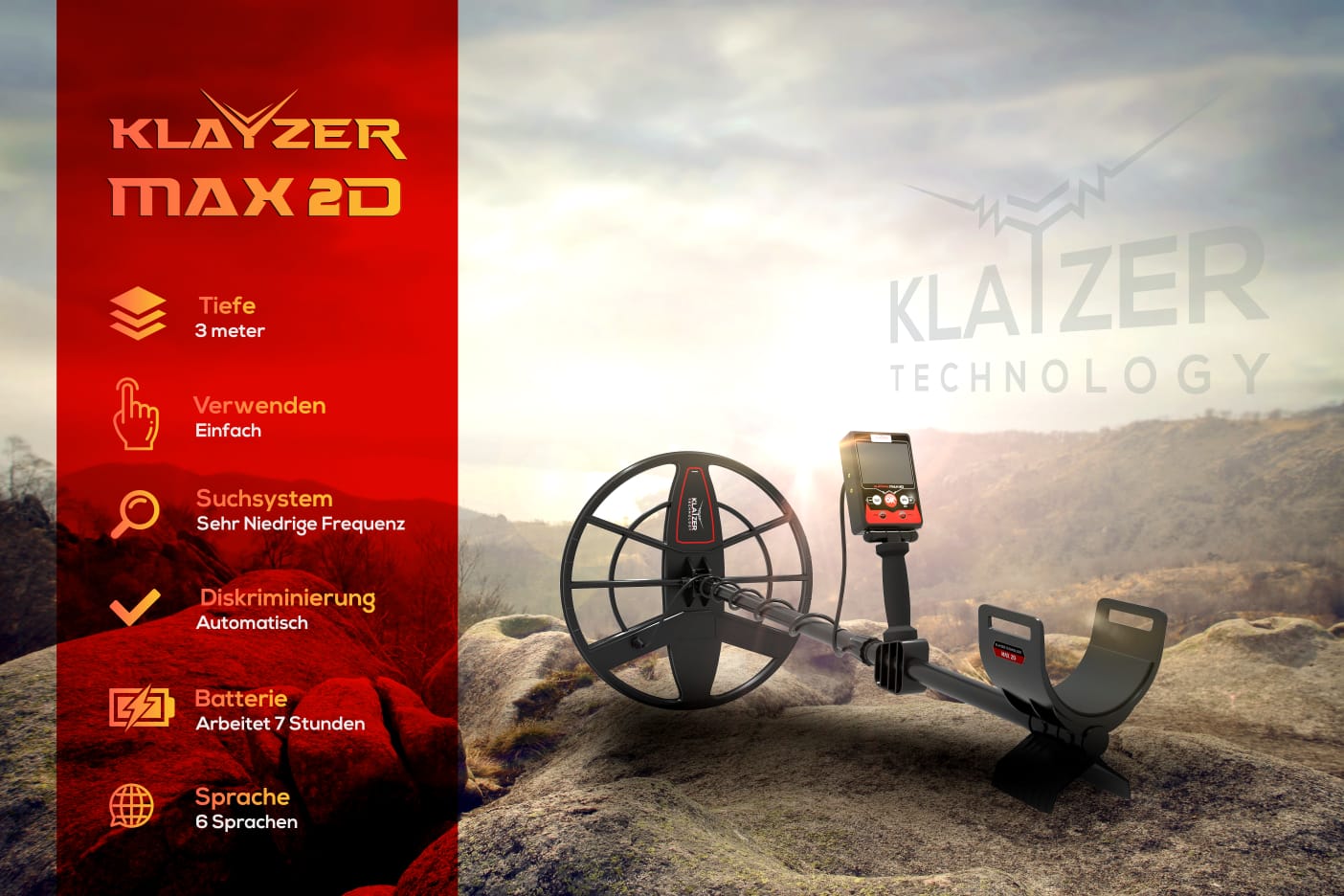 KLAYZER Max 2D klassische Detektoren; Es ist ein vielseitiger Metalldetektor, der auf einem Farbbildschirm basiert und das einfachste System seiner Klasse hat